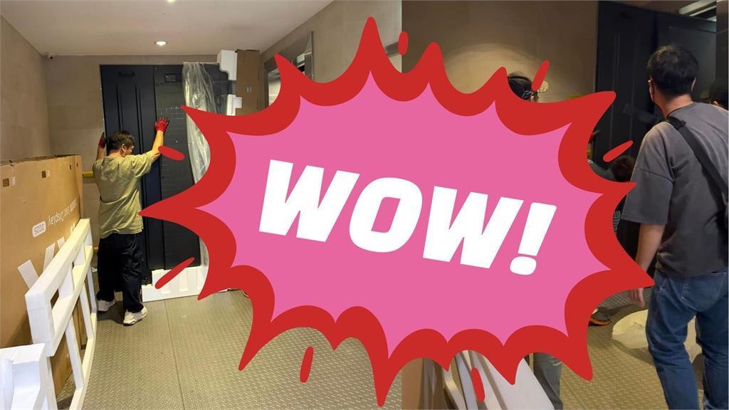 最近1名網友在臉書社團貼出2張照片,他表示準備要搭電梯時,撞見5位師傅正在搬一個長度比電梯門還高的東西,一開始以為他們在修電梯門,仔細一看竟是「100吋」大電視,忍不住讚嘆「原來跟這麼懂享受的人當鄰居」,畫面中一旁全是拆開後的紙箱和保麗龍,因為體積過大甚至需要把紙箱全拆開,傾斜後才能搬進電梯,看著師傅們手忙腳亂的畫面,讓原PO直喊:還以為在裝門…。