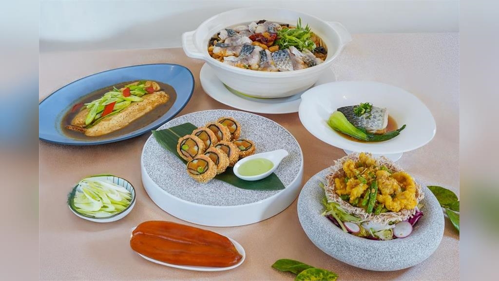 這一次的烏魚季,一共推出六道主廚精心設計創意菜品,以不同部位入菜,充分發揮烏魚的多元風味,以蝦漿結合烏魚子、白蘿蔔、蒜苗搭配芥末微辣風味,呈現有別於傳統的「芥醬百花烏魚子」;或是使用紅燒手法料理並淋上少許麻油增添香氣,口感軟嫩的「蒜香紅燒烏魚膘」;以港式避風塘作法炒製香酥爽口的「避風塘炒烏魚胗」,讓人一口接一口;在湯品方面,主廚以烏魚的鮮甜精華搭配蒜苗、新鮮蔬菜與Q彈米粉,創作出暖胃的「蒜苗烏魚米粉湯」,令人回味無窮。此外,還有將烏魚去骨取肉,簡單醃製後以大火清蒸,再淋上少許的魚露及花雕酒的「花雕鮮露蒸烏魚」,展現魚肉的原汁原味;最後選用越南米線,搭配新鮮蔬菜及鮮香麻辣的湯頭而成的「水煮烏魚過橋越南米線」,帶來濃烈的味覺衝擊。