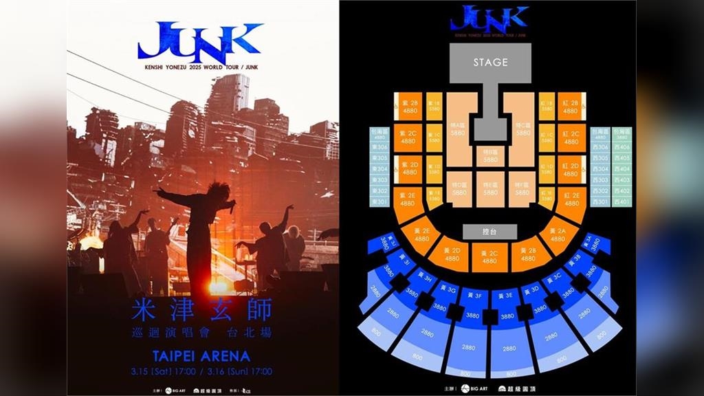創作出〈Lemon〉、〈LOSER〉、〈地球儀〉、〈KICK BACK〉等多首破億神曲、在音樂與藝術領域皆嶄露頭角,人稱全方位天才的米津玄師,宣布將於2025年3月15日、16日攻佔台北小巨蛋,並帶來全新世界巡演「KENSHI YONEZU 2025 WORLD TOUR / JUNK」。主辦單位今(16)日宣布台北場票價及詳細日程,門票採實名抽選,並分為兩階段銷售,後續若有剩餘票券,才開放一般販售,主辦單位提醒,視主辦單位票券販售情況,也有可能不實施一般販售。