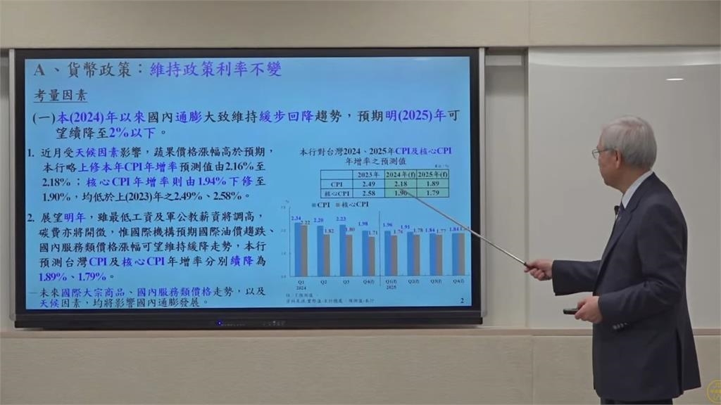 在美國、日本等主要經濟體宣布利率政策後,台灣央行的走向也引發各界關注;中央銀行今(19)天召開理監事會議,並於下午4點多舉行會後記者會。宣布利率第三度維持不變、也沒有新的打防措施。
