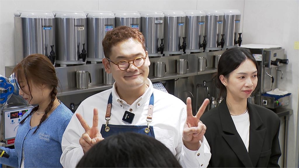 南韓實境秀主廚金太星說必須充分加熱,才能保留奶茶和麻糬的味道,這樣才算完成。拿起工具,把泥麻糬攪拌均勻,南韓實境秀黑白大廚,隱形天才金太星,三度來台,全為了研發這一樣聯名手搖飲。