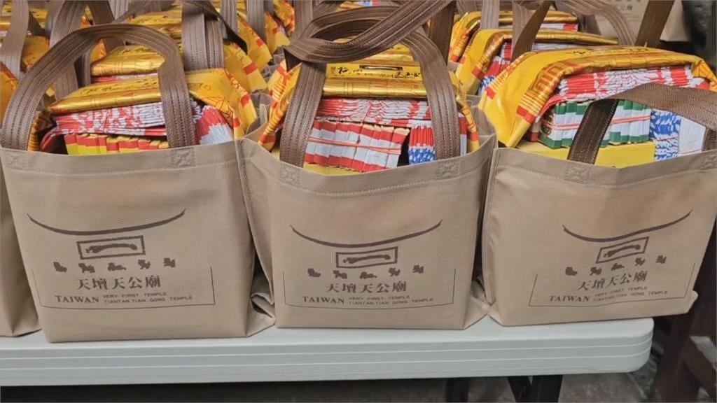 台灣首廟天壇秘書陳淑鈴表示:「平安水啦代表平安,還有麵長壽嘛,還有糕餅是步步高升,還有圓圓滿滿的中藥的,小粒的中藥代表圓圓滿滿,還有祈福鹽可以消除穢氣。」
