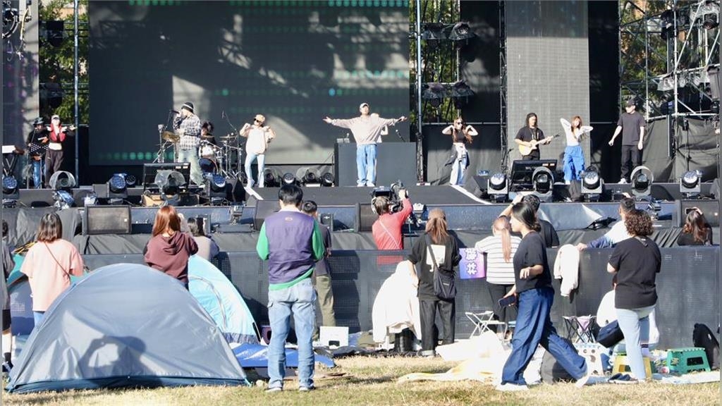 2025台南好young跨年晚會,@onefive彩排,歌迷粉絲卡位一睹風采。 (圖/民視新聞)日前玖壹壹曾預告要將台南跨年變成夜店模式,邀請各界民眾一起跟著音樂健康搖起來,30日彩排,除了春風、健志、洋蔥,搭配舞群,進行彩排預演,熱鬧的曲風,新竹來的許小姐,一面手機錄攝,一面跟著吟唱歌曲,展現玖壹壹死忠粉絲行為,提前享受玖壹壹粉絲專屬排演。台南今年跨年晚會卡司,誠如黃偉哲市長所言,沒有最好,只有更好。市府運用有限資源,盡力打造豐富的視覺饗宴,締造偶像經濟,這項造夢,台南真的做出品牌,且有口皆碑。絕大多數卡位,則是為了韓流巨星男神李俊昊,台南林媽媽為了高二的女兒,提早搭帳棚卡位,「因為女兒今天上課,所以提早來幫女兒佔位」;台東來的王小姐與閨秘黃太太,邱小姐三人,昨晚就在舞台前搭帳篷夜宿台南,不約而同感謝黃市長,邀請她們的偶像來台灣跨年,王小姐說,會認識、進一步喜歡李俊昊,則是因為《衣袖紅鑲邊》這齣劇,當場許願,希望明年能再見車銀優,王小姐說,車銀優6年前曾來台南,當時沒來得趕上韓流風潮,希望明年這個許願單,黃市長能幫她實現。韓語甚是流利的王小姐,當場與另一角落兩位來自韓國首爾的李小姐、朴小姐,聯誼起李太太粉絲見面會。「昨半夜2點飛機,韓國飛台灣,今早10點來到台南,就是希望能陪李俊昊一起在台南跨年」韓國李小姐當場拿出李俊昊企鵝小物,讓我們拍攝,可見多麼支持李俊昊!