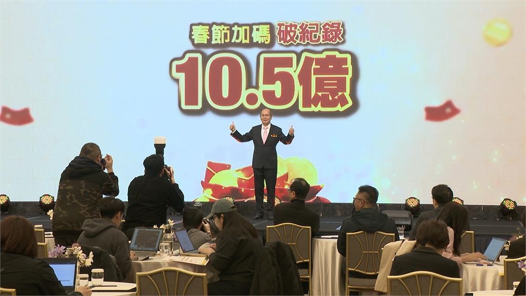 台灣彩券總經理謝志宏:「今年春節加碼的,總金額是10.5億,也是創下歷年來最高的加碼金額,那其中最受大家歡迎的,大樂透部分的話,也會從一月二十四號,開獎開到二月十二號。」
