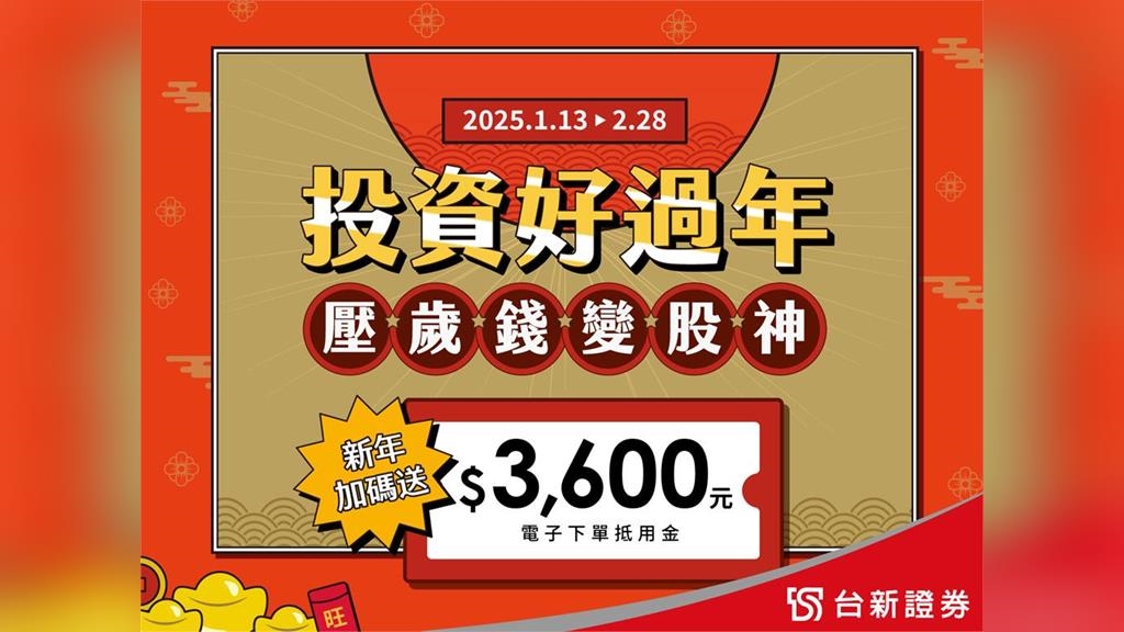 台新證券為迎接金蛇年到來,強勢推出「智慧理財 好運連連」新春限定活動,祭出開戶就送3,600元新春發財金等多樣吸睛優惠,為的就是讓投資人在臺股春節休市十一天,仍能掌握全球財富良機,以最佳狀態迎接新一年財富挑戰。