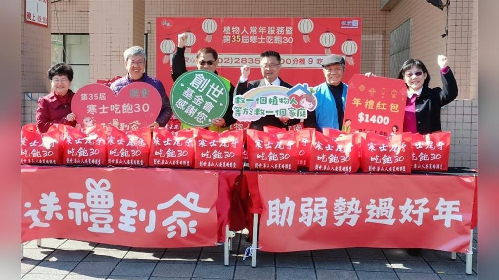 創世基金會多年來致力服務植物人家庭、寒士街友、清寒單親、獨居長輩等弱勢對象,舉辦之「植物人常年服務暨寒士吃飽30」募款活動迄今已屆滿34個年頭,近四年來受疫情、流感及食安議題影響,改以「送禮到家」替代圍爐。富邦集團秉持公益初衷,自2017年起捐助創世基金會,年年不缺席至今已第九年。今(13)日起創世基金會展開「植愛年禮」送禮到家活動,由前副總統陳建仁先生、衛生福利部呂建德次長、臺北市政府社會局鄭文惠副局長與富邦慈善基金會鄭基男董事化身送禮大使,前往植物人家庭贈送關懷年禮及祝福紅包,並貼上吉祥喜氣的春聯,為弱勢家庭打氣,祝福一年平安順利!