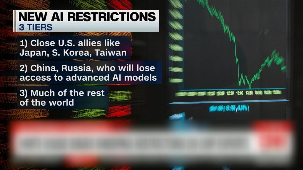 中國非法竊取AI晶片,威脅美國技術競爭力,為了揪出白手套,除了第一級的台灣、日韓、英國等18個關鍵盟友,不受管制影響;多數國家歸在第二級,符合安全標準,並獲許可,就能申請購買,未來兩年最多可買32萬個先進晶片,衝擊最大的中港澳、俄羅斯等22國,則嚴格管制封閉式AI模型,不讓出口。