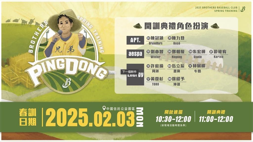 2025球季開訓典禮「菜鳥日」活動也將全面「進化」升級!在2024季中選秀會中信兄弟選進的11位新秀們,將一改過去「菜鳥日」搞笑裝扮的傳統,化身為偶像團體表演方式登場,將為現場球迷帶來當紅歌曲《APT.》、大勢女團《aespa》的破億神曲《Whiplash》,還將唱跳跨世代男團《Energy》的經典舞曲《放手》,除了展現個人表演能力以外,也要考驗小象們的團隊默契。