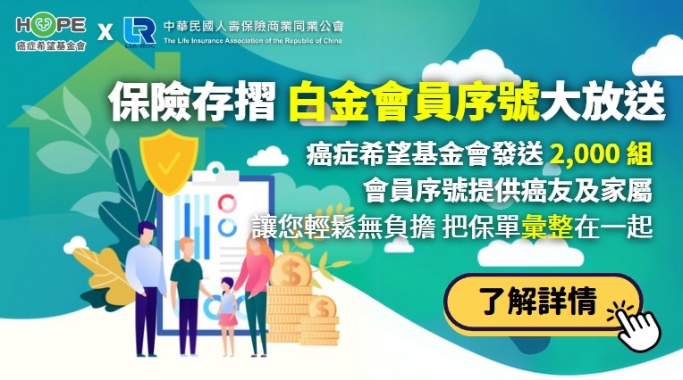 瞭解更多關於「保險存摺」白金會員序號申請:https://www.ecancer.org.tw/news/index/1/uz6x0。