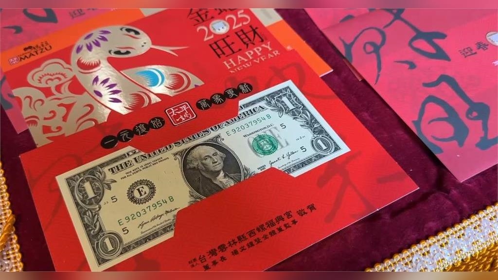 打開討喜蛇年紅包,裡頭裝有一元美金,象徵一元復始萬象更新,西螺福興宮,過年備好9999個開運紅包,要發送給民眾添財氣。過年新春活動,西螺新天宮,也有紅包免費送,金額從100元到2000元不等,隨機發放,大家憑運氣。迎接金蛇年,大年初一,各大宮廟開廟門,民眾走春拜廟,討個好彩頭。