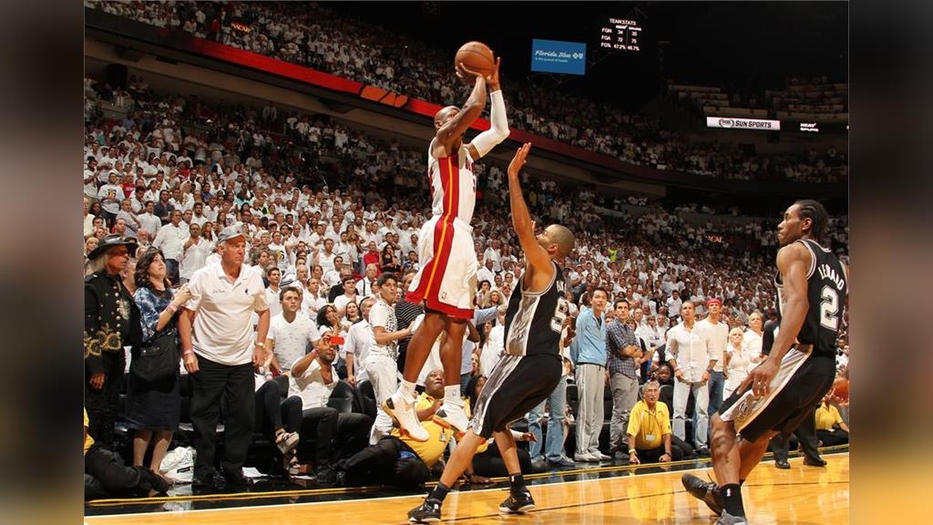 2013年6月18日,總冠軍系列賽3比2聽牌的馬刺,在G6最後19.4秒還握有三分領先,但「雷槍」用這記「The Shot」幫助熱火死裡逃生,並在延長賽一舉奪勝扳平系列賽,最終也在G7戰勝馬刺,完成二連霸,這一球也成為熱火隊史與艾倫生涯最經典的一擊。