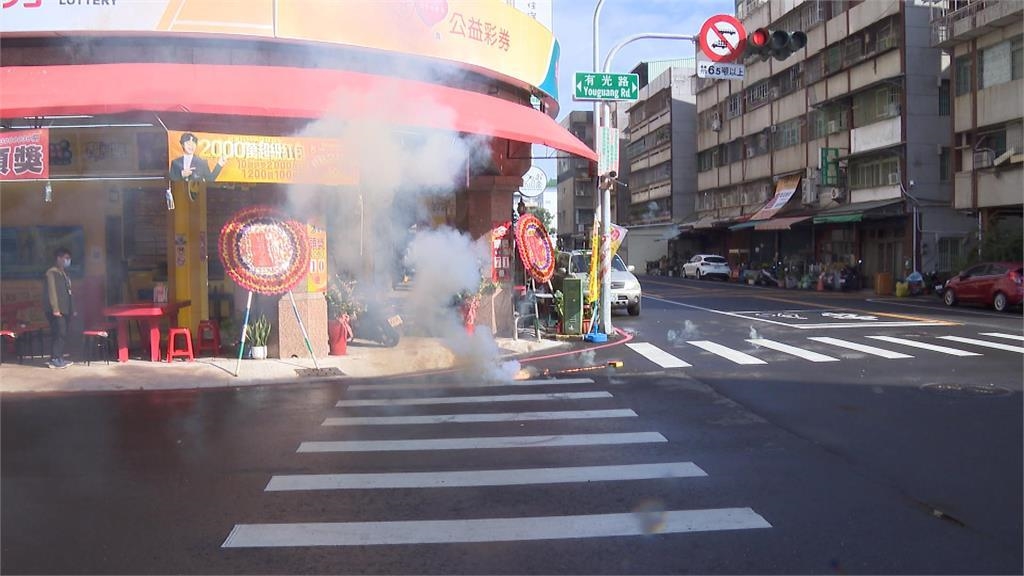 慶祝的鞭炮聲,在大馬路旁劈哩啪啦大聲響起,現場氣氛相當熱鬧,因為這間位在高雄市三民區的彩券行,初二晚上開出頭獎,店外擺放了花圈,並張貼紅紙狂賀。已經二連槓的大樂透頭獎,金額高達1.86億元,共2注中獎,每注0.93億元,其中一個地點就在高雄市的三民區,大家相當好奇幸運兒究竟是誰,業者表示他也不知道。許多民眾聽到消息,攜家帶眷朝聖,有附近居民也有遠道而來的民眾,不論是買張大樂透,還是現場刮刮樂,希望也能沾沾喜氣。民眾說,昨天有中頭獎,財神有經過這裡,可能還在逗留。民眾說,就住附近啊,伊定要來捧場,知道他得獎,更高興啊。民眾說,剛看人家發那個就是有光路中頭獎,沾沾喜氣。