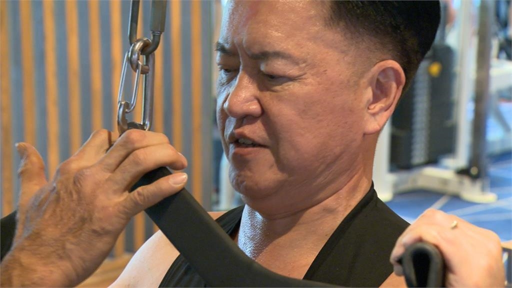 維持標準姿勢,對抗阻力往下拉,今年65歲的飲料公司創辦人林志隆,不管是練胸、練背、練手臂,蹲舉練腿都難不倒他,健身兩年來已增肌8公斤多。