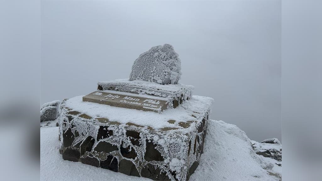 大自然的雕刻!玉山主峰零下2度美景曝 英文石碑被白雪覆蓋變身白字