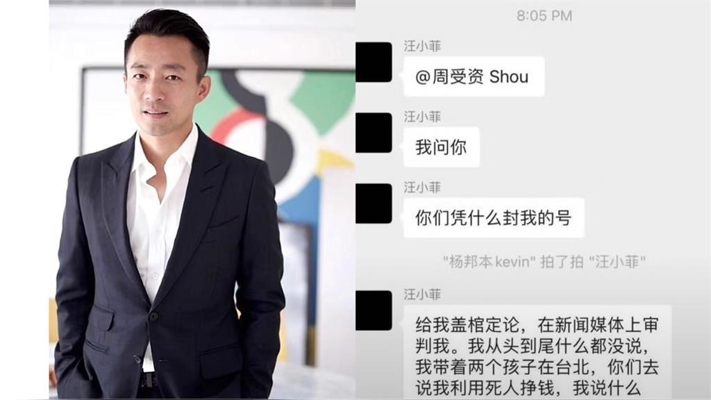 大S(2日)驟逝於日本東京醫院,眾親友以及粉絲都悲痛不已,而前夫汪小菲、以及前婆婆張蘭因過份造謠被抖音官方認定利用大S過世炒作,無限期封禁一干相關帳號,汪小菲氣得在微信朋友圈提出3點質問,聲稱遭抖音平台無端霸凌與審判,網路隨後流出微信「華人之光」群組截圖,汪小菲標註周受資怒問「憑什麼封我的號」,中國網友一看都笑了,因周受資是TikTok執行長,與抖音無關,汪小菲根本找錯人算帳。