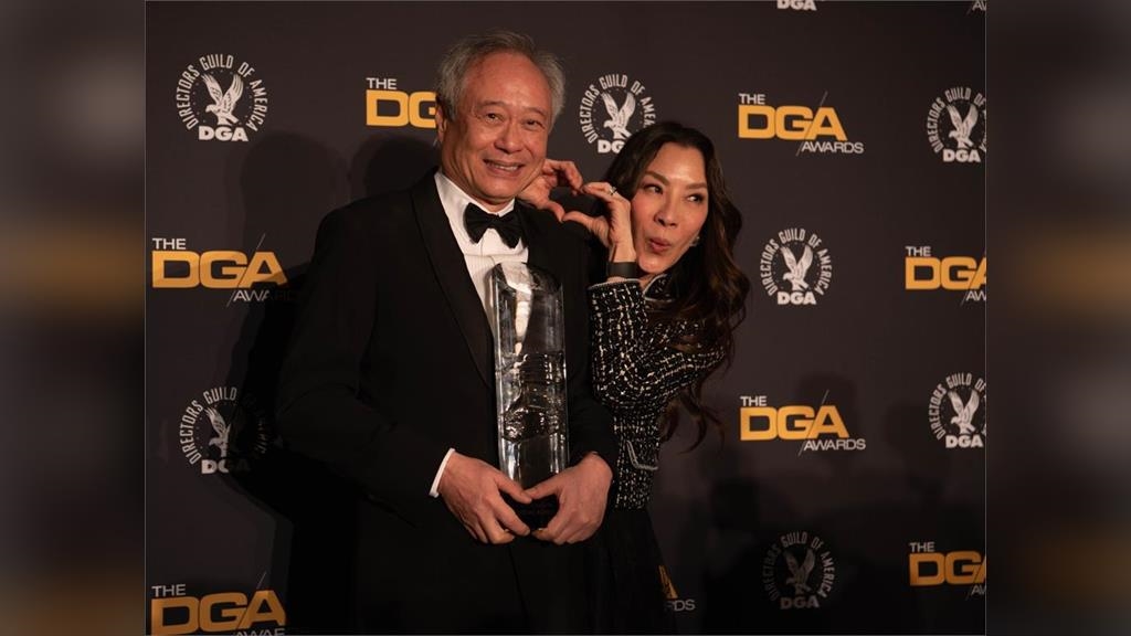 台灣導演李安獲頒美國導演工會的終身成就獎,由奧斯卡影后楊紫瓊頒發。(圖/By Clayton Davis YT))