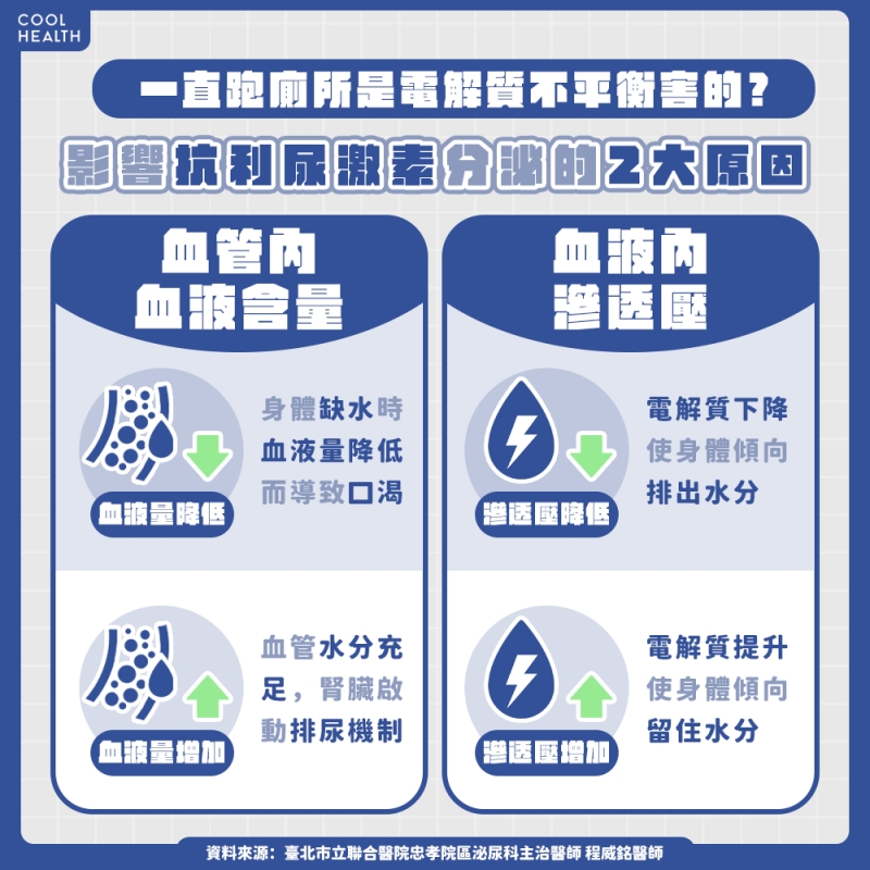 一直跑廁所是「電解質」不平衡害的? 影響抗利尿激素分泌的2大原因