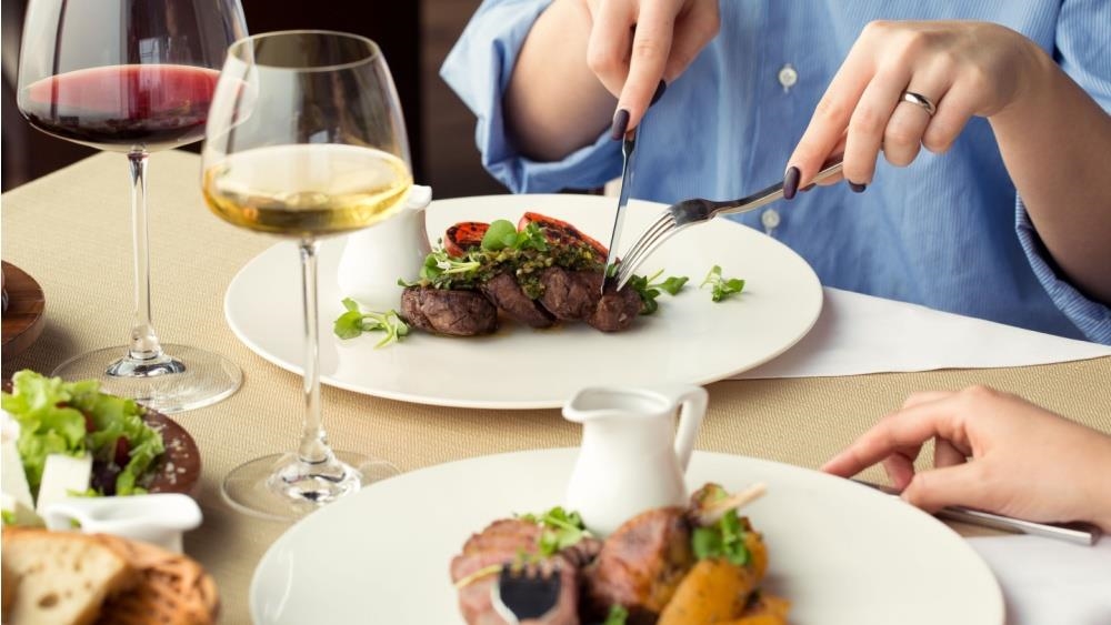 前菜部分,選擇以清蒸或烘烤作為烹飪方式的食物,避開油炸、油煎等油量多的烹飪方式。主餐選低脂肉類;雞肉、蝦子、龍蝦等是相對低脂且營養價值豐富的選擇。牛肉可選板腱、沙朗等油花少的部位;佐料以海鹽、黑胡椒粒為主,避開蘑菇、黑胡椒醬。