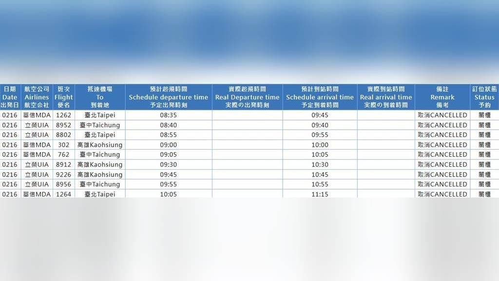 國內線飛機航班,依金門航空站網站資訊顯示,自上午8時35分起起降的班機,已有不少班次已取消或延遲。