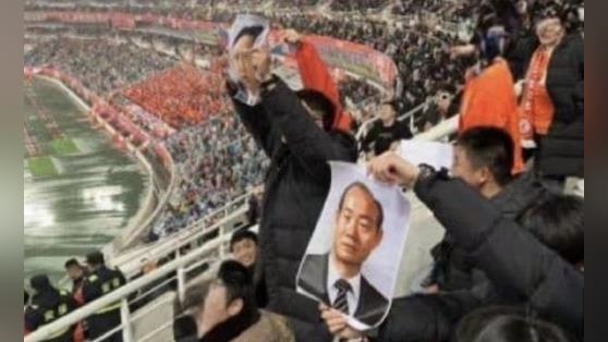 中國山東泰山11日在主場濟南市西柳體育場,對戰來自韓國的光州足球俱樂部,終場由山東泰山以3:1得勝,但現場中國球迷完全沒有展現「運動家精神』,在慶祝同時還不忘高舉「前總統全斗煥」的照片嘲諷對手。