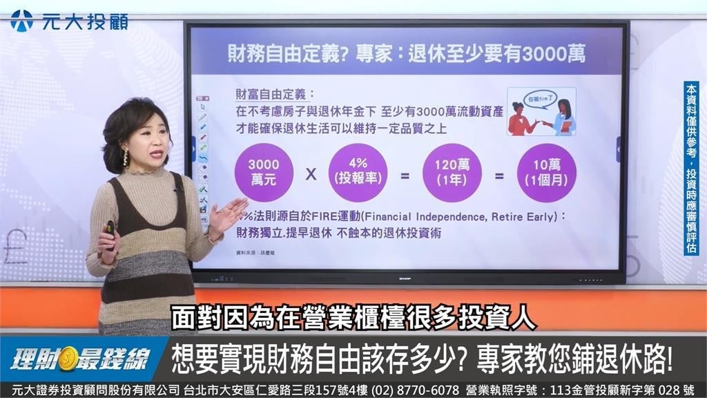 今天(26)主持人胡睿涵要帶您了解退休財務自由3000萬該怎麼存、想要實現財務自由該存多少、3000萬退休金好難存,就有專家認為定期定額可以從現在開始,今晚9點精議題投資家日報總監孫慶龍、元大證券副理黃皓瑋報你知。