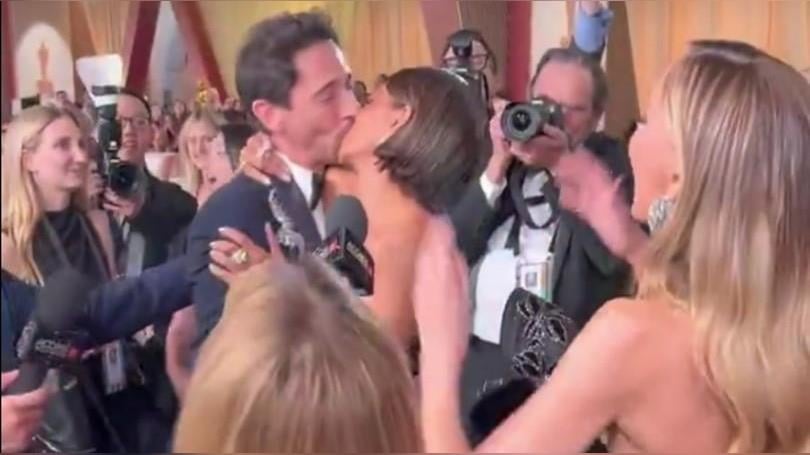 第97屆奧斯卡頒獎典禮還未頒獎,在經典的星光大道紅毯上已出現了許多奪得鎂光燈焦點的經典畫面,奧斯卡影后荷莉貝瑞(Halle Berry)在紅毯上遇到今年再次角逐影帝的安德林布洛迪(Adrien Brody),在明星與媒體眾目睽睽的當下,荷莉貝瑞主動抓住安德林布洛迪獻上熱吻,他們親吻了幾秒鐘後擁抱對方,兩人都笑得很開心,也將現場的氣氛炒到最高點!
