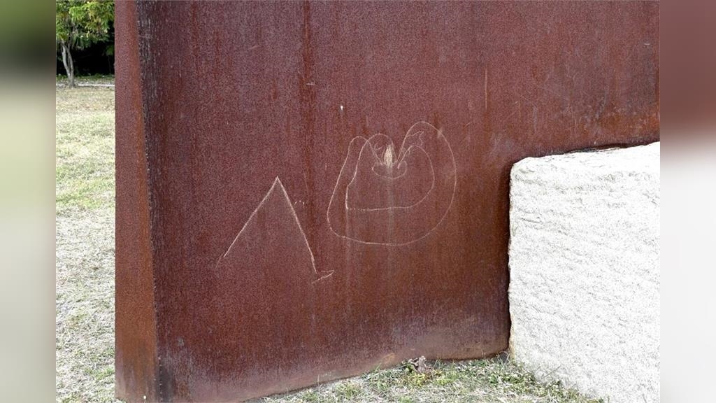 南部中心/鄭兆佐、張可倫 高雄市報導高雄美術館外,由德國藝術家創作的公共藝術,竟然被民眾惡意破壞,作品上出現塗鴉,甚至還有簽名。館方發現後,相當心痛,立即請專業團隊來做修復,同時也已經報警處理。