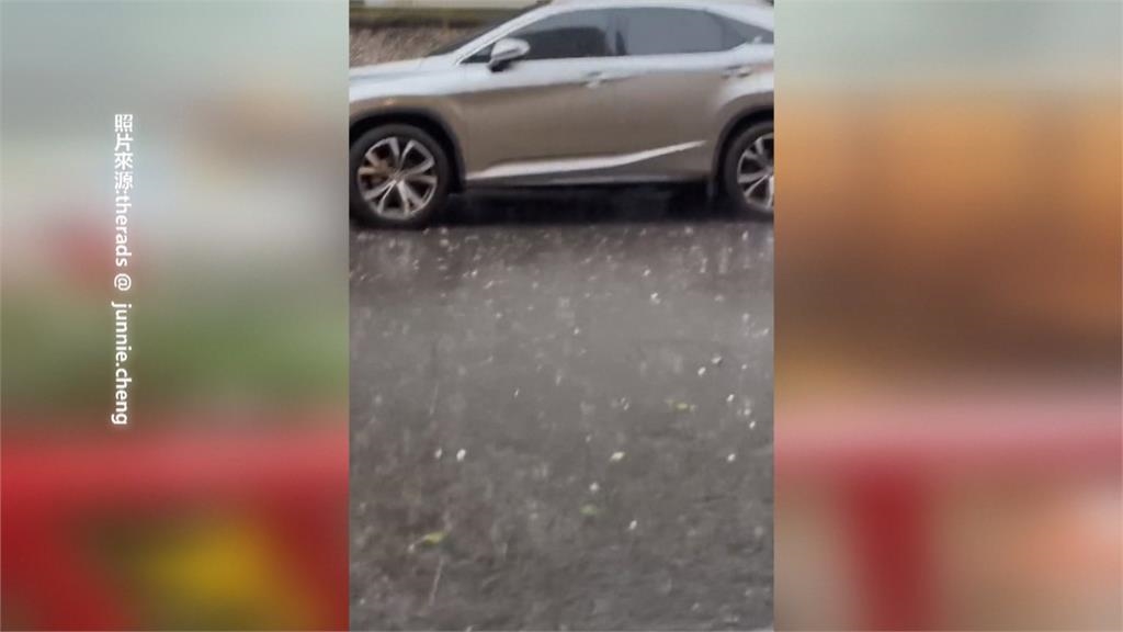 受到鋒面影響,4日下午,在中部地區,多個縣市都感受到這波春雨威力,苗栗縣,台中市,南投縣多處地點,都有民眾拍下天降冰雹景象,甚至有冰雹大小,將近一個手掌大;另外,強風也造成台中市區市政路與河南路口路樹倒塌,砸毀車輛。
