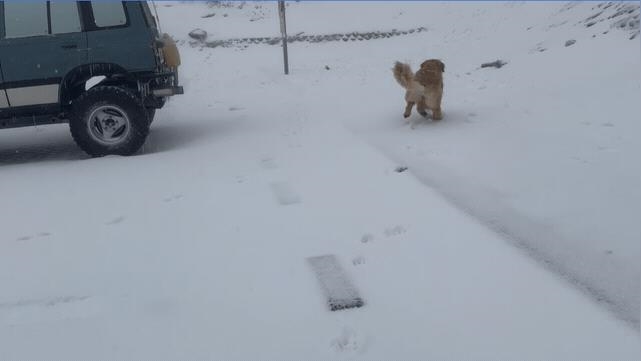 合歡山降3月雪!黃金獵犬嗨翻狂奔還吃雪 「雪地印超萌狗掌」畫面曝