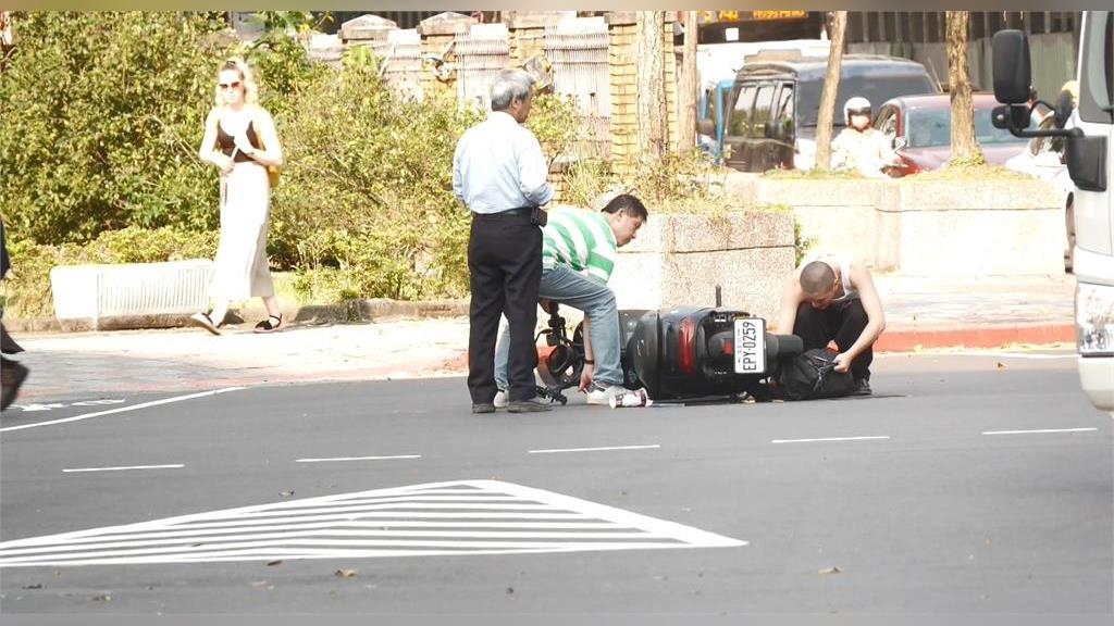 機車騎士:「今天這邊,四個小時內已經發生兩次,同樣地方的車禍了。」用路人忿忿不平,喊話市府趕快解決問題,北市公館圓環的車流量大,公車、汽機車,人車爭道,加上交通號誌複雜,一不小心就會發生車禍!受傷騎士:「待轉過來,然後我沒有很搞清楚這邊的號誌,要先看哪一個,然後我就看到後面的那個號誌這樣,然後我就以為是綠燈我可以走,結果還沒,車就過來就撞到。」實際現場目擊車禍發生,不愧被視為肇事率最高的熱區,看看一個路口,三個紅綠燈,機車騎士完全不知該看哪個,最後跟汽車擦撞,摔車受傷,還有待轉格塞滿機車,甚至溢出到行穿線上,行人只能在夾縫中求生存。