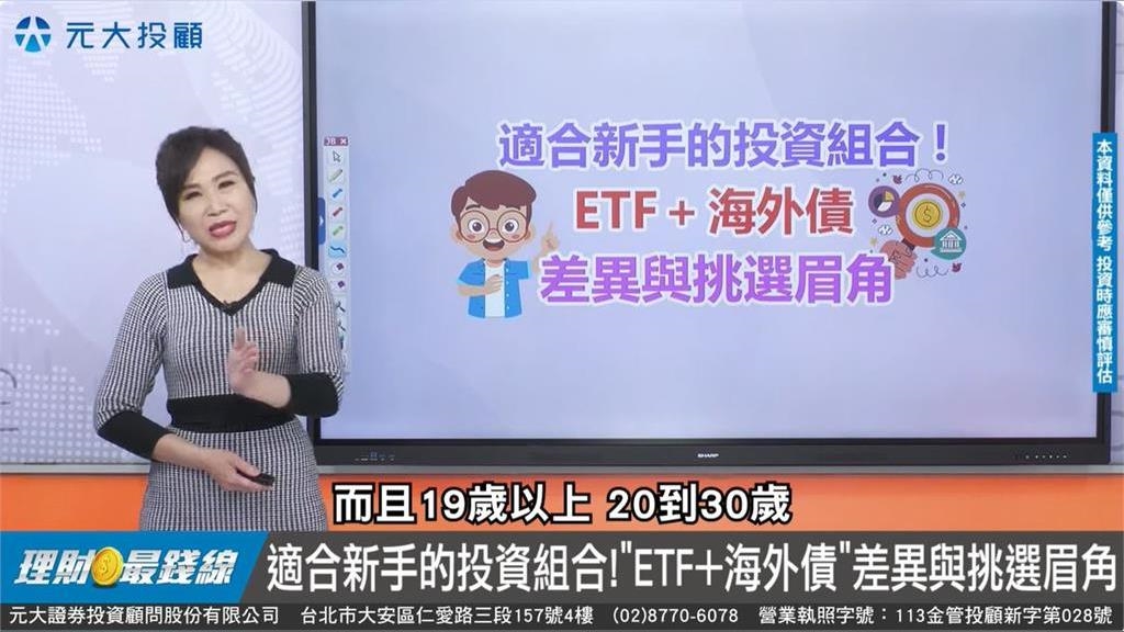 台股目前平均每2個人就有一個開戶,其中,20到30歲年齡層的開戶人數,更是創下歷史新高。這集理財最錢線由主持、元大投顧董事長胡睿涵及2位來賓,元大證券副理洪正詰和元大投顧專業經理游豐進,介紹新手如何選擇投資標的,分析ETF和海外債的差異: