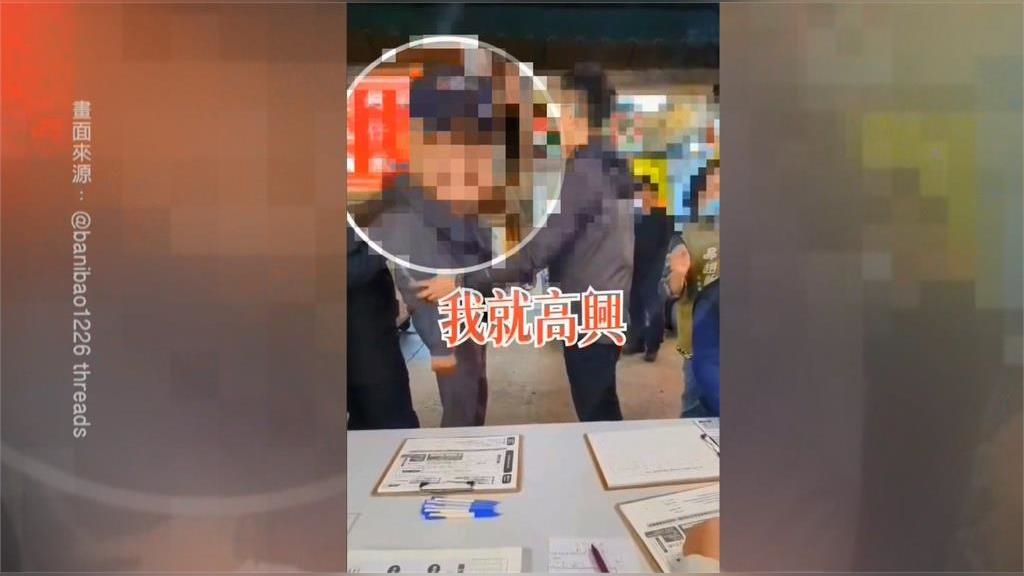 身穿灰色上衣、帶著鴨舌帽的男子,坐在連署站的座位上,卻沒有動筆簽字,而是開始挑釁女志工,罷免國民黨立委賴士葆團體,3號在景美夜市設連署攤,又遇到鬧事者,登門找碴。