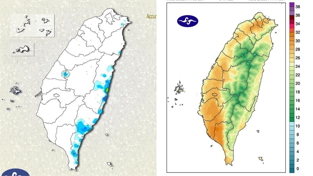 前氣象局長鄭明典在臉書曬1圖,並以「一陣雨、一陣暖!」為題發文表示,北方天氣系統減弱了,鋒面往南趨勢越來越弱,一陣雨之後就是高壓迴流的偏東風,此現象會讓氣溫回升很快。根據中央氣象署資料顯示,明(12日)至週日(13日),新一波鋒面通過,降雨範圍比前一波廣,且容易發生短時間內降下大量暴雨的機會,不過氣溫部分還是相對偏高,全台各地區高溫皆在30度左右。