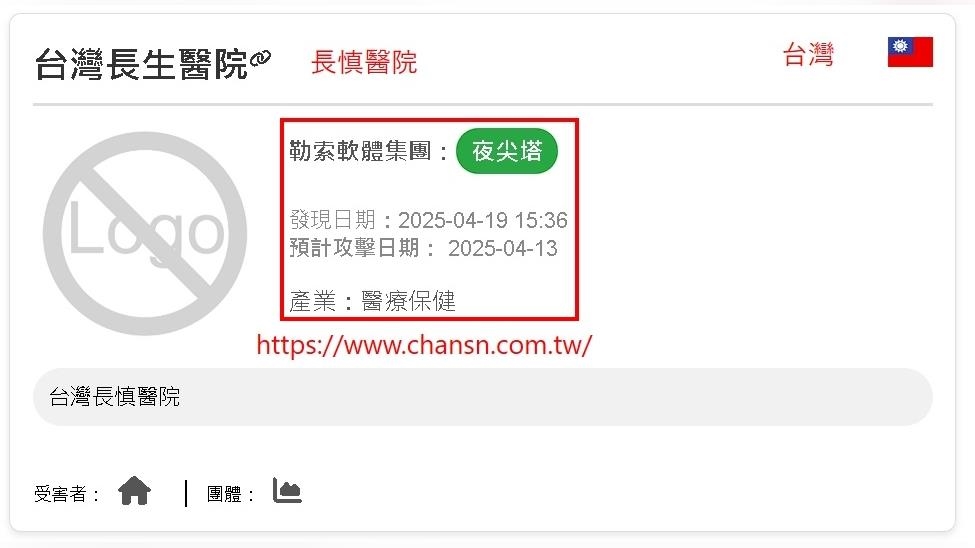 台灣中大型醫療體系已成駭客攻擊勒索目標!繼馬偕醫院遭駭客勒索之後,台灣首家老年專科醫院中壢「長慎醫院」也傳出駭客入侵、800G病歷資料外洩事件,據了解,犯案的是新興駭客組織「夜間塔(NightSpire)」,長慎醫院本月13日遭攻擊,導致網路掛號、初診、醫師開處方等功能停擺至今,至於駭客勒索金額,仍不得而知。
