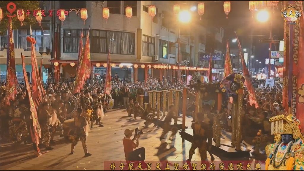 嘉義縣朴子配天宮舉辦天上聖母聖誕繞境大典,陣頭演出意外出現插曲,讓大家都嚇了一跳。其實不是演出者沒踩穩,從另一個角度看得更清楚,舞獅的尾巴在跳躍的瞬間,勾住了樁柱,導致兩個人被拉住,才摔下樁。其他醒獅團教練坤林親自示範,「我們獅尾手會使用這個肩帶,我現在有用這個的情況,這邊被我控制住之後,這邊就比較不容易去滑到後面去,產生拖尾巴的情形,我們如果只單使用腰部的這個緊帶的話,我們做動作的時候它就很容易滑落。」