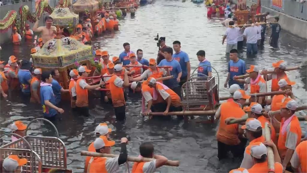 嘉義嘉應廟「衝水路、迎客王」 大批信眾隨神轎擠爆碼頭