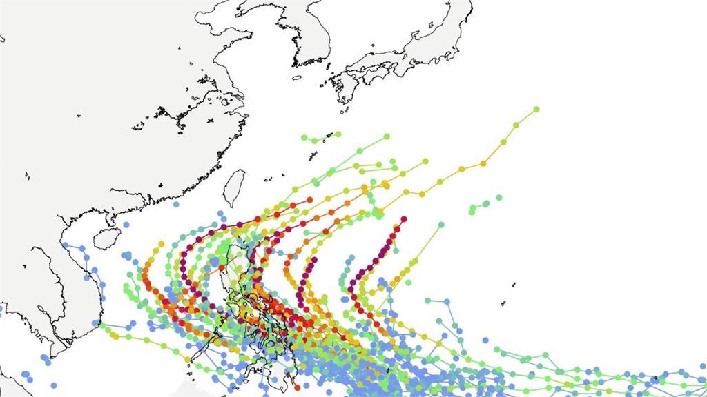 粉專也曬出歐洲數值預報的預測圖(上圖)說明,「每一條線都是模式中各個小成員的結果越發散,表示看法越分歧,可信度低」,並強調按照目前路徑預報可見相當分歧,未來是否靠近台灣、影響天氣,現在就下定論還太早,建議再多觀察幾天。