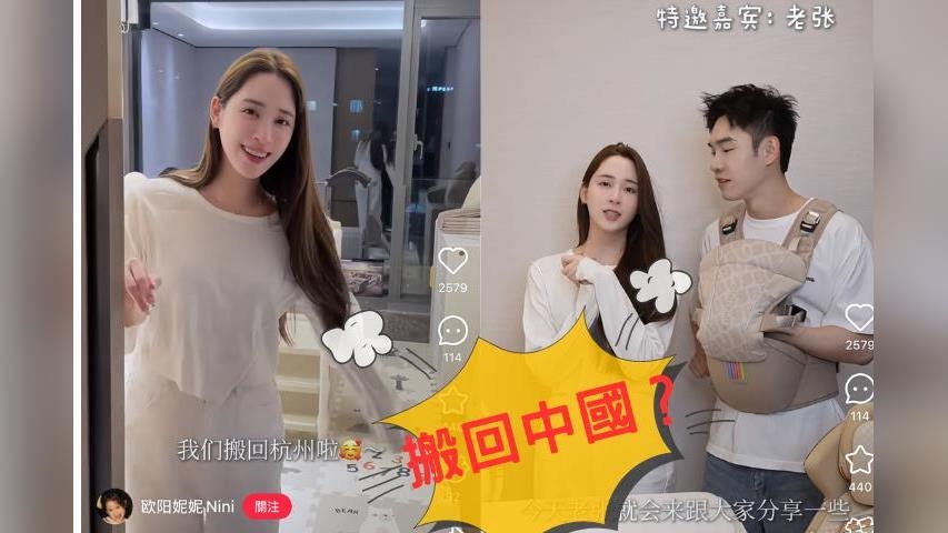 星二代歐陽妮妮是資深藝人歐陽龍、傅娟的長女,去年7月因戲和男星張書豪結婚,並在跨年夜迎來龍寶寶,不時在社群平台分享甜蜜的育兒日常。近日她在小紅書上透露,他們一家三口已經「搬回杭州」,也開始積極拍攝業配影片。此舉也引來中國網友的好奇提問,就有人直接解答,「賺錢啊,還能幹嘛」。