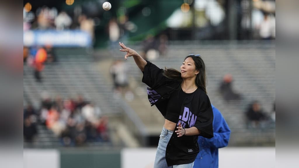 MLB(影)/首位WNBA台裔球員陳紫柔登大聯盟開球 巨人熱情迎:歡迎來灣區