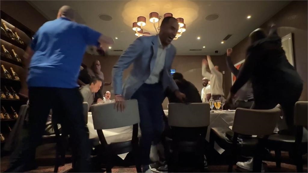 NBA獨行俠今天(13日)以1.8%各隊倒數的低機率意外抽中狀元籤,球團制服組全員集合一起見證歷史性一刻,只見宣布中籤的瞬間,獨行俠總管哈里森(Nico Harrison)第一個起身、接著全員歡聲雷動,連椅子都被撞倒,球團奪下狀元希望的興奮之情,畫面全曝光。