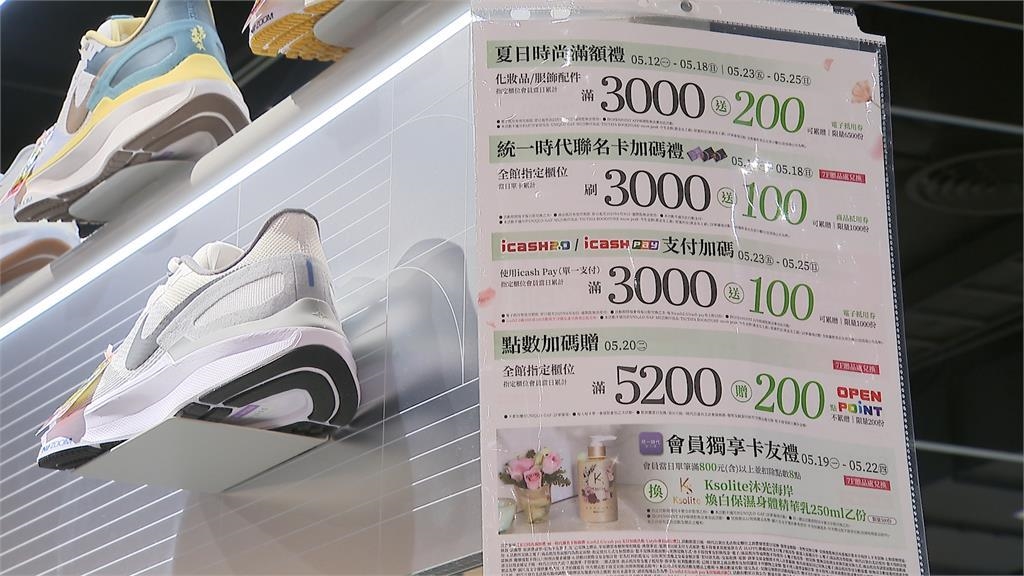 百貨也不遑多讓,知名運動品牌,不只有八折優惠,另外還有全館指定櫃位滿3千最高再送300。