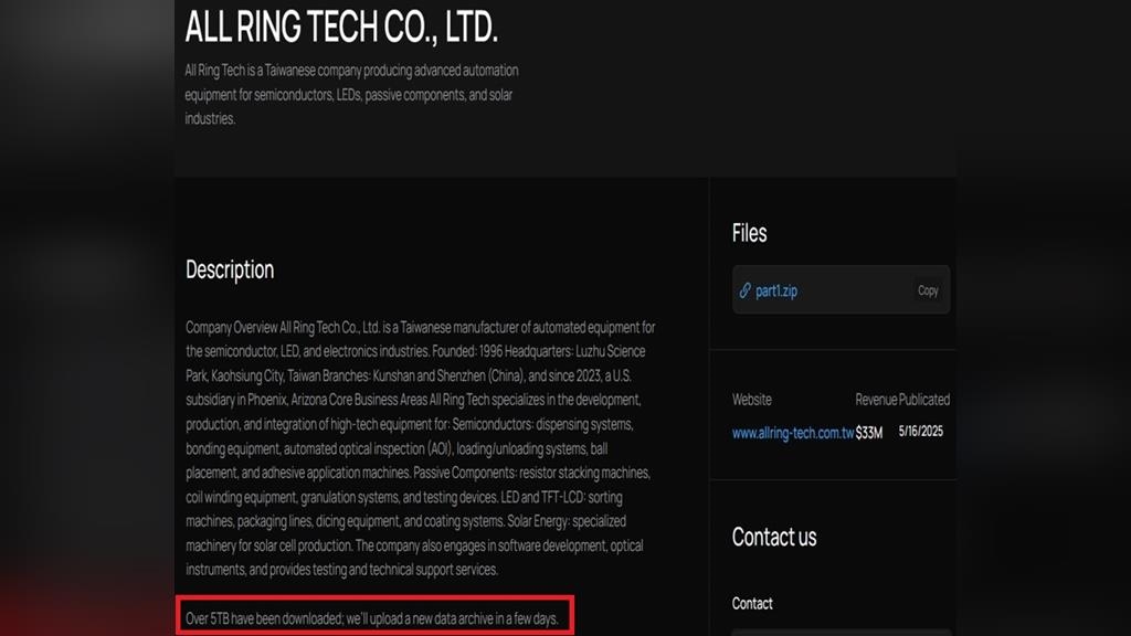 民視新聞/蘇恩民報導今年4月20台積電供應鏈CoWoS大廠萬潤科技發重訊稱遭駭客攻擊,強調沒重要資料外洩,對營運無重大影響,不料,新興駭客組織「BERT」昨突在暗網PO出12張萬潤內部檔案截圖,表示已取得逾5T資料,並揚言近日將上傳更多檔案,顯示公司尚未支付贖金,資安危機也還沒解除;由於本案為BERT首次攻擊台灣企業,事件如何演變,引發業界高度關注。