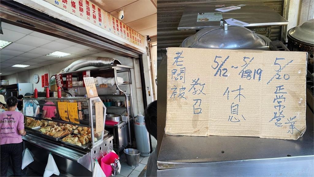 位於台中北屯水湳市場附近的「集瀧塘豆漿」,是當地人氣超高的傳統中式早餐店,以銅板價的水煎包、蔥蛋餅、鍋貼、蘿蔔糕等經典早點聞名。原本僅週一公休的店家,近日突然公告自5月12日至19日停業8天,直到5月20日才恢復營業。原因是老闆接到教召通知。這項公告被貼上店門口後被網友拍下分享到網路,引發熱烈討論。