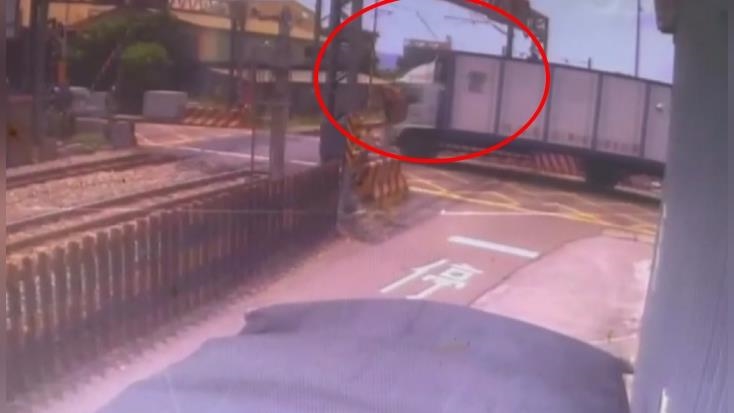 遮斷器升起三秒後又下放 一輛貨車疑似搶快來不及通過撞斷遮斷器
