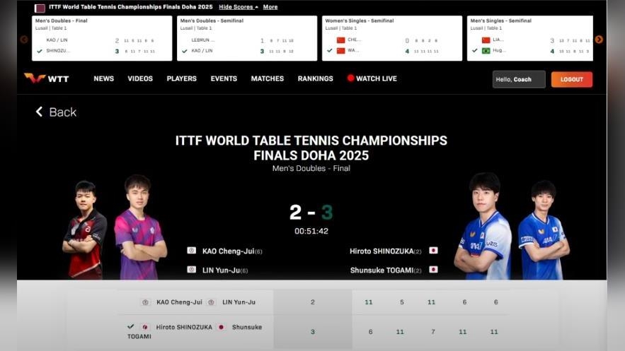 球迷關注的世界桌球錦標賽金牌戰,於台灣時間今(25)日下午5點登場,台灣隊「柚香林萌」林昀儒、高承睿對上日本組合篠塚大登、戶上隼輔。