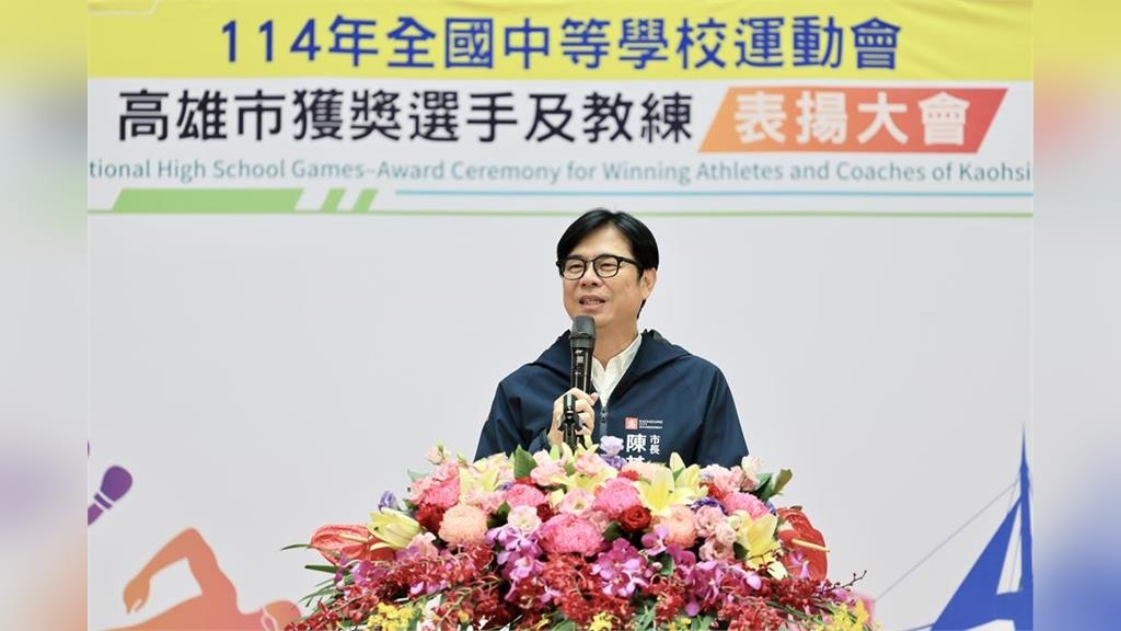 114年全國中等學校運動會高雄市獲獎選手及教練表揚大會今(27)日在市府四維行政中心中庭廣場隆重舉行,高雄市長陳其邁親自出席頒獎表揚破紀錄及奪牌選手,並頒發選手獎勵金及訓練輔助金,總金額2010萬3000元,嘉勉選手與教練辛勞。陳其邁致詞時表示,市府一定會持續扮演堅強後盾,祝福所有全中運代表隊未來能夠再創佳績、更上層樓。