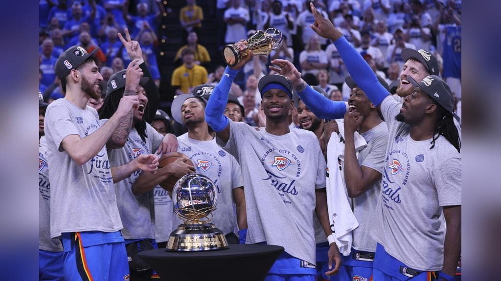 NBA西區冠軍戰G5,回到主場的雷霆攻守俱佳,以124:94,30分之差劈退灰狼,系列賽4勝1敗抱回西冠,勇闖總冠軍戰。西冠MVP由少主「SGA」吉爾吉斯-亞歷山大(Shai Gilgeous-Alexander)拿下。