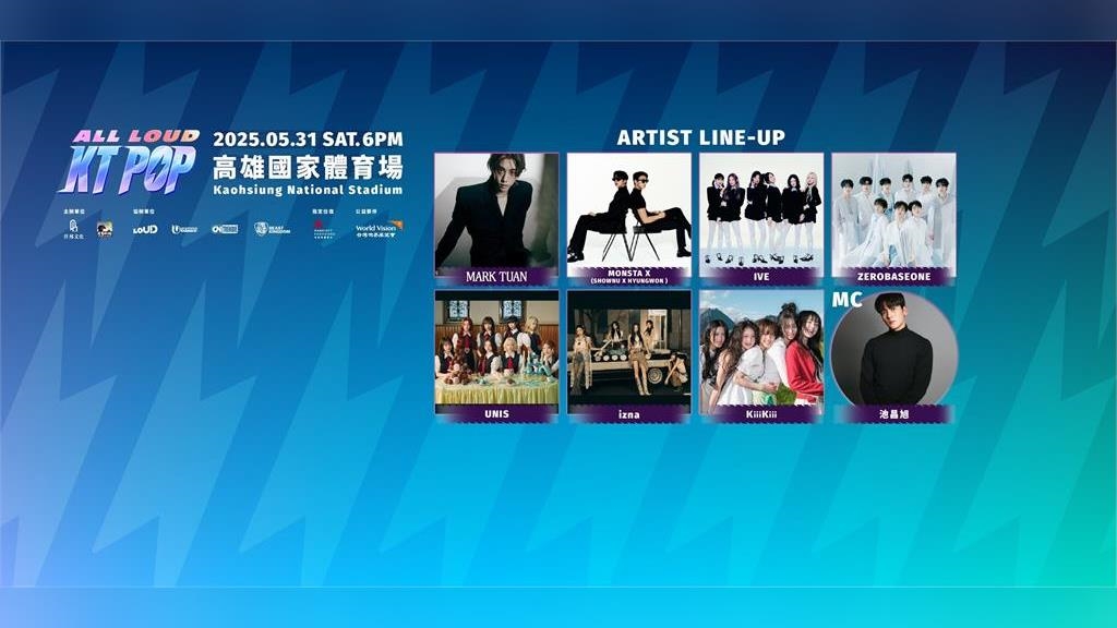 韓流拼盤「KT POP」演唱會明(31)日晚間在高雄世運主場館登場,演出卡司包括Mark Tuan(GOT7)、MONSTA X(SHOWNU X HYUNGWON)、IVE、ZEROBASEONE、UNIS、izna、KiiiKiii、池昌旭(MC)。