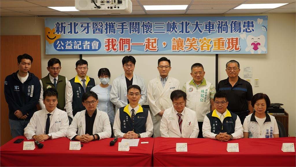 新北市牙醫師公會秉持專業與社會責任,今日上午攜手三峽恩主公醫院牙醫部及公會三峽地區熱心牙醫師,共同發起上述行動,提供受害孩童與其家庭完整的口腔重建醫療服務。包括院長黃信彰,新北市議員卓冠廷、林銘仁、呂家愷,三峽區龍埔里里長陳椿瑩等人都出席。