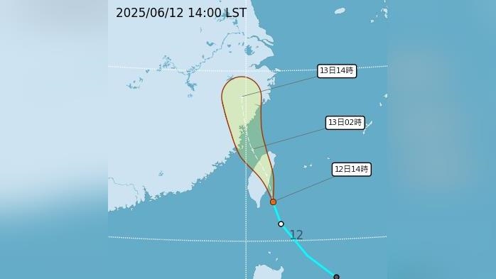 氣象署今(12)日表示,熱帶性低氣壓1002百帕,在北緯22.3度,東經121.7度,即在臺東東南方80公里的海面上,向北北西移動,時速30公里,近中心最大風速每秒15公尺,瞬間最大陣風每秒 23 公尺,今晚即將穿越台灣。
